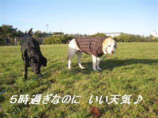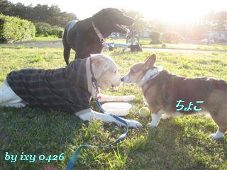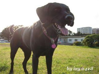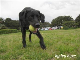 なんだかんだと30分位 遊べたかな? 帰ろうって思った頃 頭上には真っ黒な雲があって 粒を落とし始めた・・ 周りにいた小型犬たちも さっさと片付けて帰って行く 結構な速さで 迫ってきた黒い雲さん 雨が降る前に しっかり散歩が出来たよ