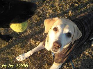 公園でも薄暗くなると ドロで汚れたテニスボールは芝と同化していて 人間でも見えない で 雫も見えない でもジェナは見える?匂いかな?白内障がかっている目で見えるはずはないのだろうが まっすぐボールのあるところへ歩いていく所をみると ジェナと雫は6歳も離れているのに・・って思う