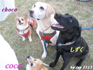 公園に着けば お決まりの臭い嗅ぎ・・ いつもの広い場所は小型犬軍団がいたので 他の場所で遊んでいると ちょことCOCOが来る。