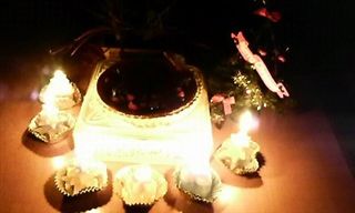 我が子の作品とキャンドル〜♪ | ||