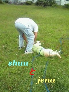 車を停めて ジェナにshuuだよって言えば 喜んで下りるジェナさん shuu大好きだもんね〜 すっかりテンション高めで 遊ぶ気満々のジェナ 遊んでもらおうとはしないけれど 嬉しさ倍増なのはよくわかる 撫で回してもらい ボールを少し投げてもらい・・