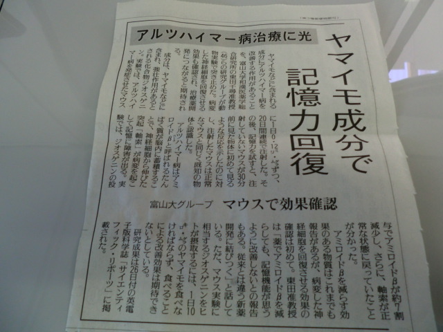 08:30にIさんのお宅に伺いました。昨日の讀賣朝刊の新聞記事;掲題ーの切抜きを頂きました。自然薯栽培の励みになります。