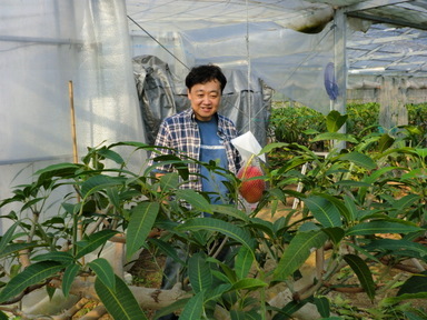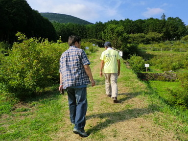 YKさんが踊り子号で河津に来られました。14:35着。Hさんの農園とブルーベリー観光農園に案内しました。