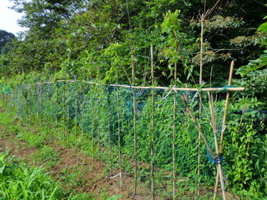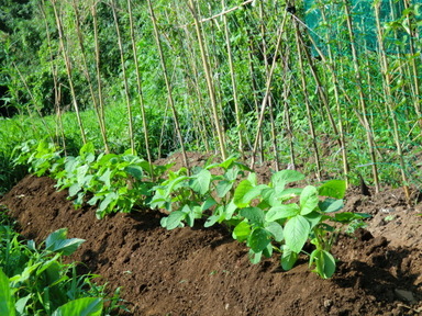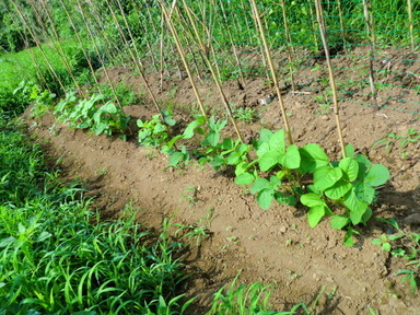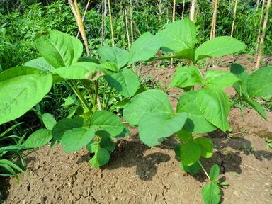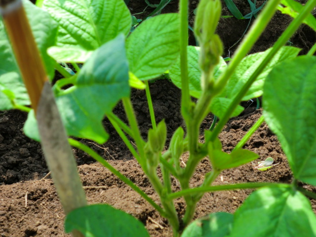 黒豆も大きくなりました。約30cmまで伸びてきました。追植した2個の芽が出てきて計16本の黒豆が成長しています。丹波の里の黒豆ほど大きい実をつけることを期待します。