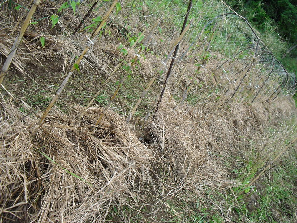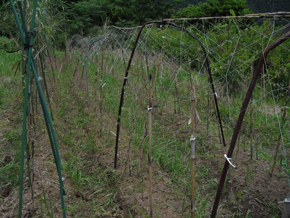 河津堤圃場:カット芋支柱立て・ネット張り |