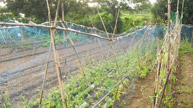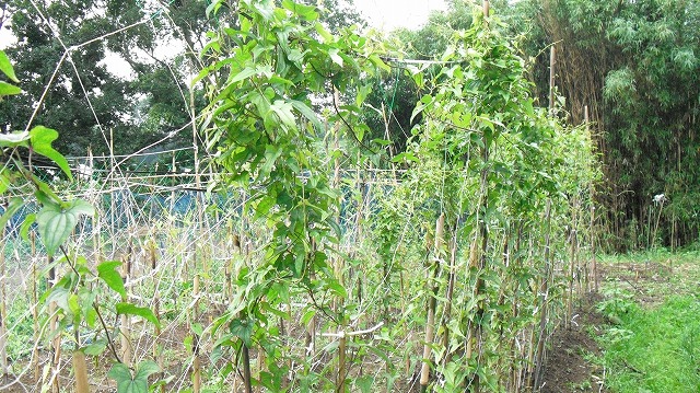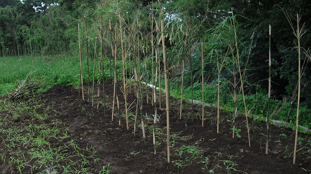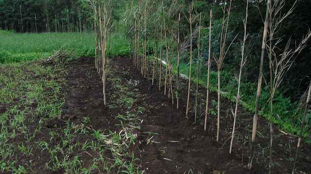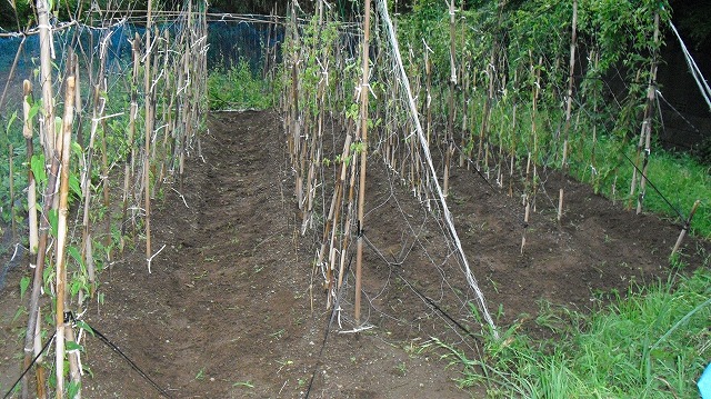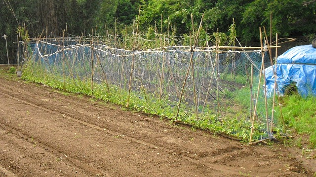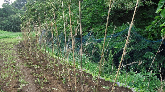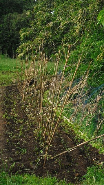昨夜の台風は風が強く、自宅の周りをビュービューと大きな音を立てていました。今朝、圃場を見てきました。心配したほどに被害はありませんでした。わずかに第二圃場の竹の支柱が10本ほど倒れていた程度でした。この支柱は土に刺しただけでした。第一圃場のようにネットを張り、支柱を三方でしっかりロープを張った部分は倒壊がありませんでした。8月から9月に来る台風には対策が必要です。成長最盛期のムカゴが落ち、蔓が切れるなどの心配があります。
