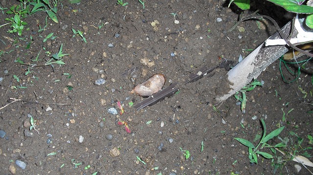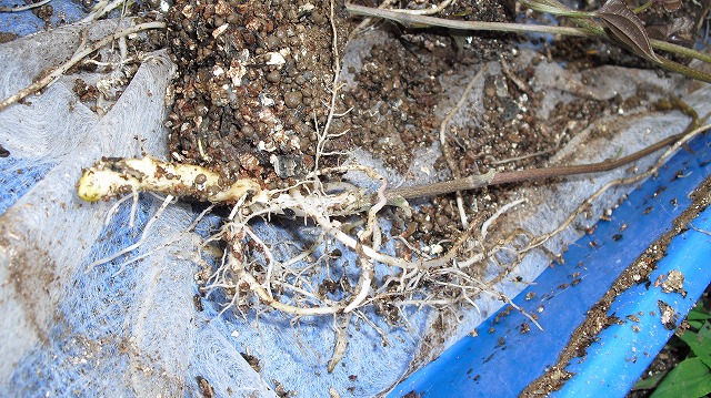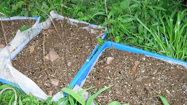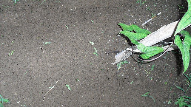 雨が上がったので夕方に圃場に行ってみました。2W前に取った雑草が台風と雨で土に揉まれ生き返っていました。再度掘り返し根ごと抜き取り、そのままにせずに固めて圃場外に捨てました。パイプに埋めた芋が剝き出しになっていたので盛り土をしました。4月初めに定植した畝の自然薯の蔓はネット天井で繁茂しています。作業時間:1時間です。伸びた蔓は103本です。芽が出ていない芋は8本です。