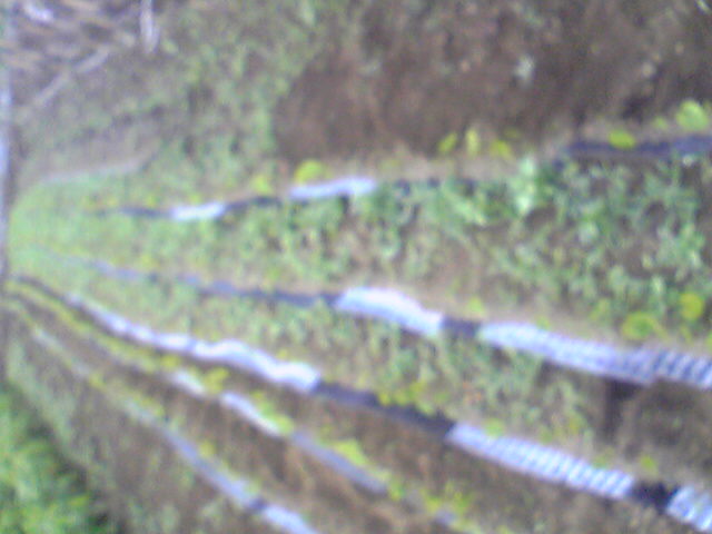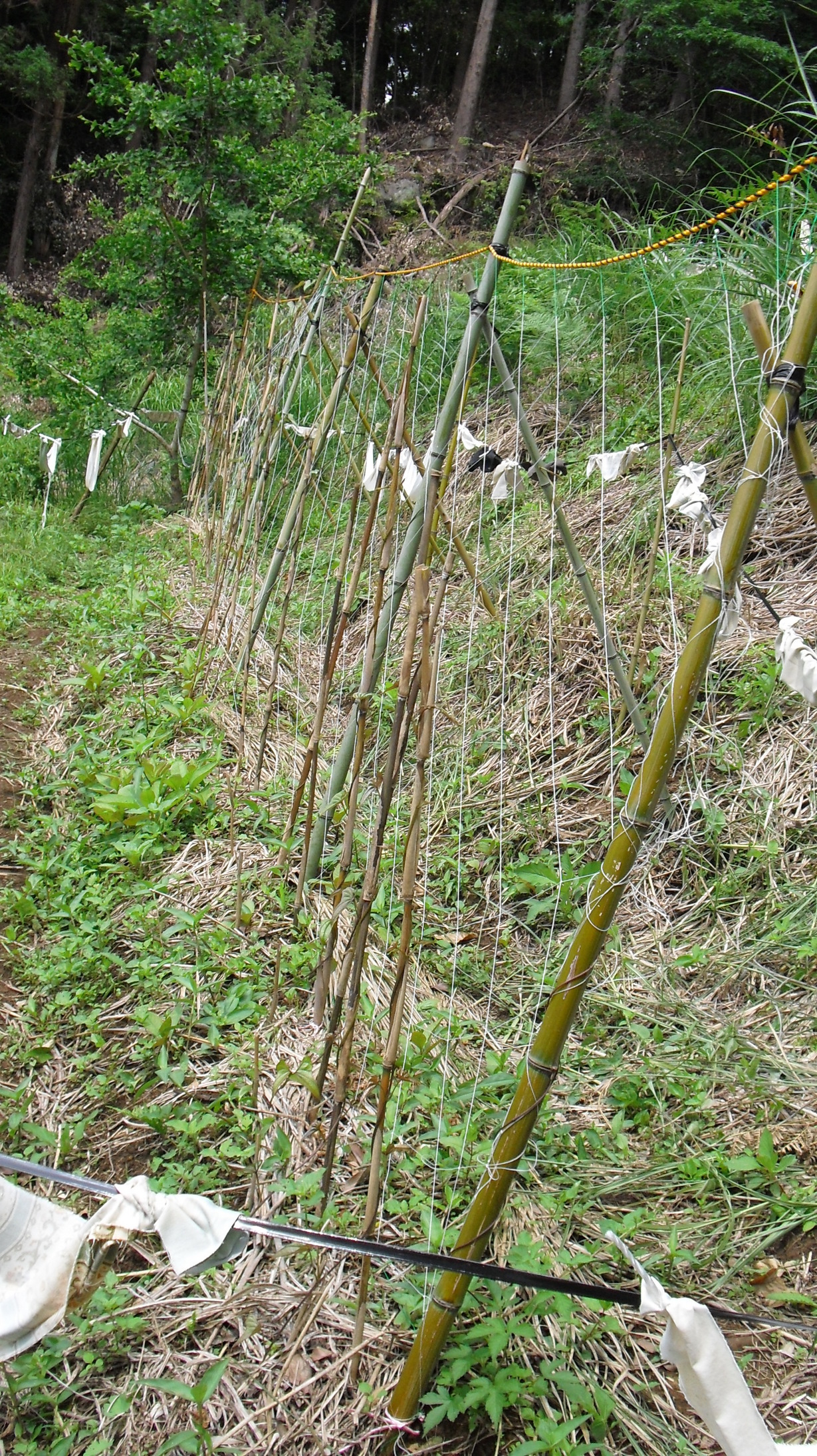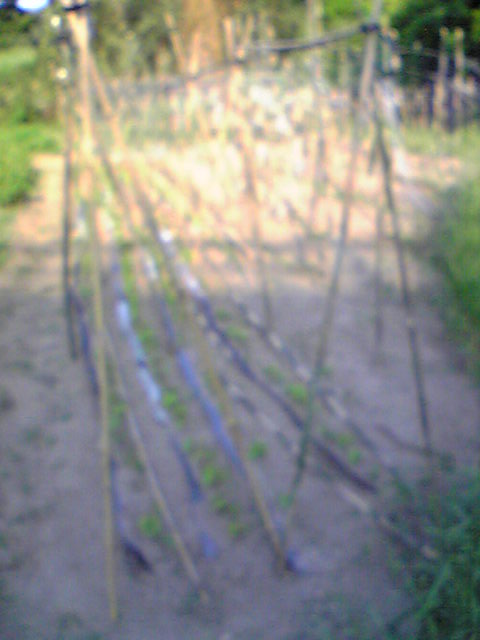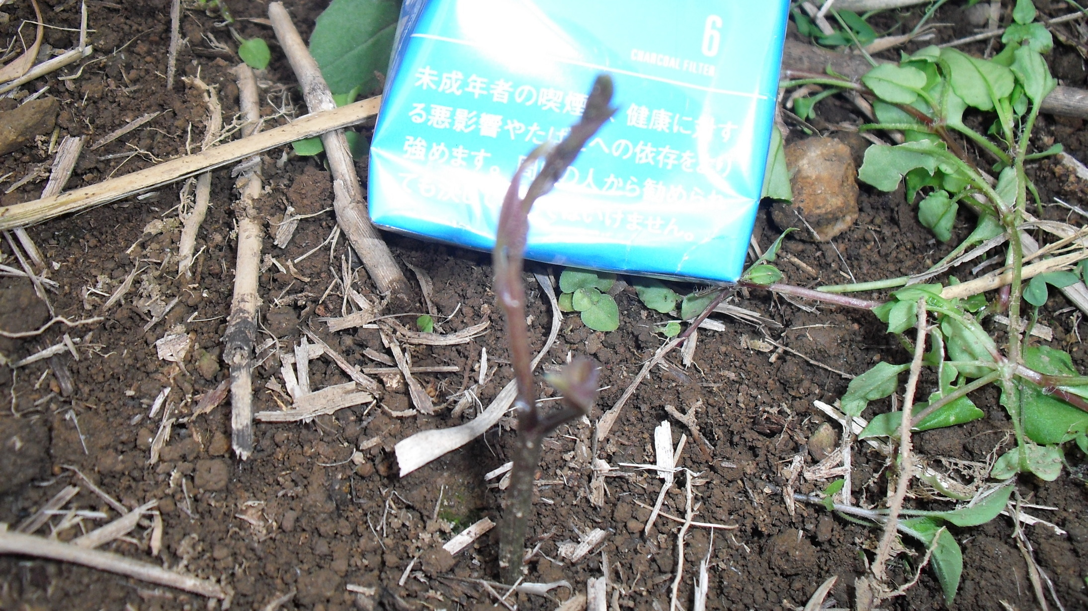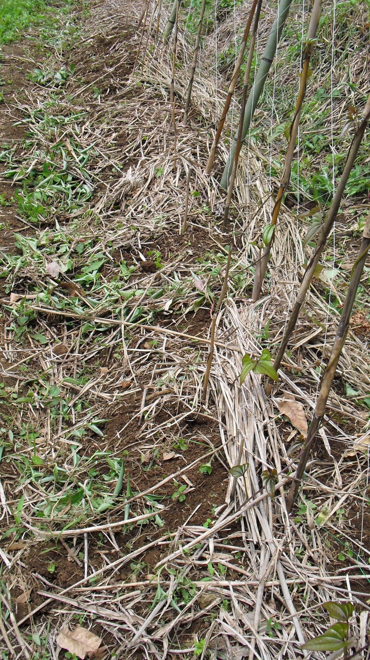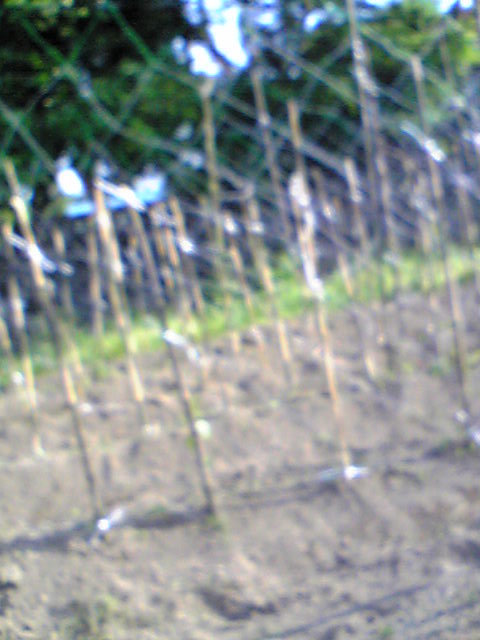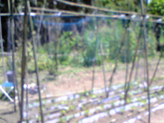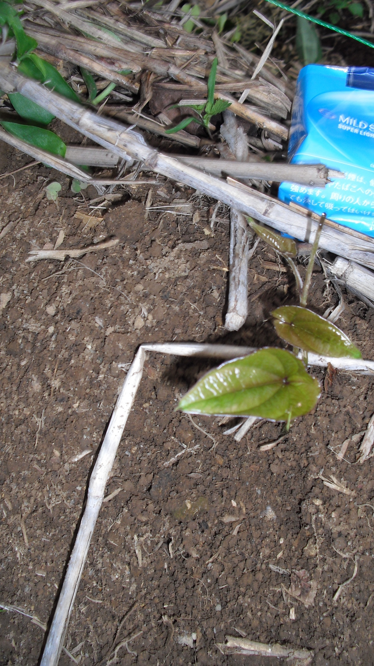 午前中にムカゴの蔓のネットを張りました。浜田さんから頂いたネットを使用しています。午後も継続です。カット芋栽培器から蔓が伸びてきました。来週定植します。