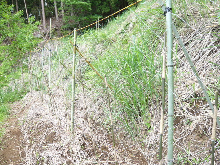 本日河津入りして、09:00−11;00 土屋圃場の自然薯のネット張りをIさんと共同で実施しました。