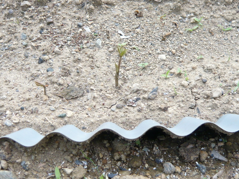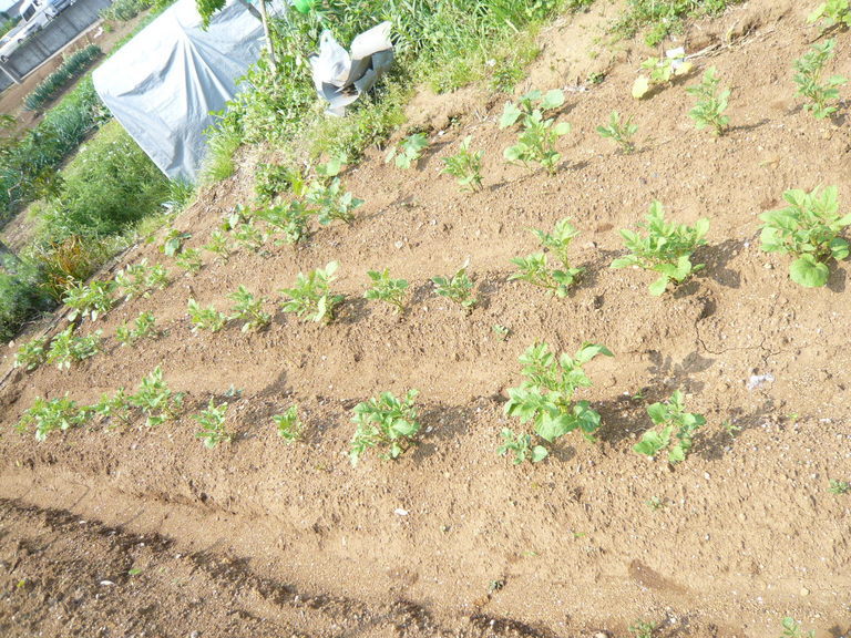 伊豆からの帰宅は渋滞を避けるために河津を07:15に発ち、修善寺ー伊豆スカイラインー箱根新道ー小田厚経由で帰宅しました。09:25着。平塚の圃場にも1本種の蔓が長いもので25cmほど伸びて目出し棒に絡まっていました。蔓が出た物:12本。また、ここではムカゴの蔓も伸びてきました。支柱立てが必要です。