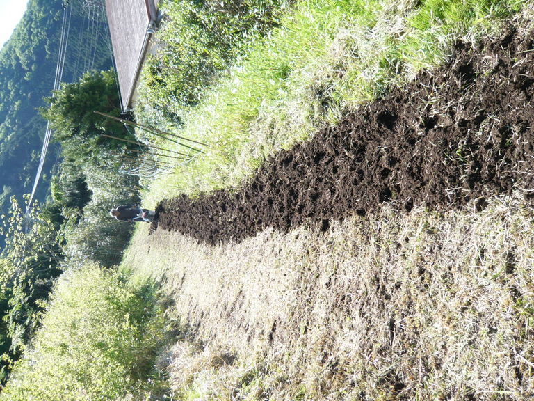 朝7:00に土屋圃場に行きました。4月初めに定植した政田農園の1本種の蔓が30cmほど延びていました。他にも4本ほど延びています。そろそろ蔓の養生が必要です。また、何か獣の足跡が見つかりました。猪?鹿?猫?獣害対策も考えなくてはいけませんかね?