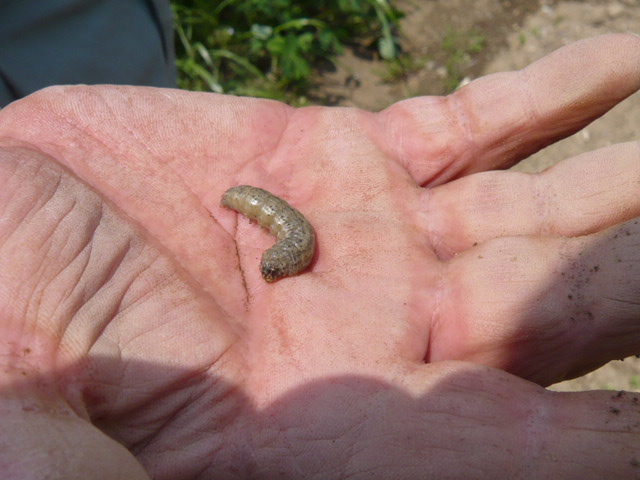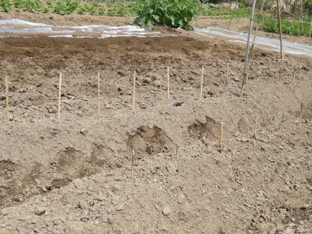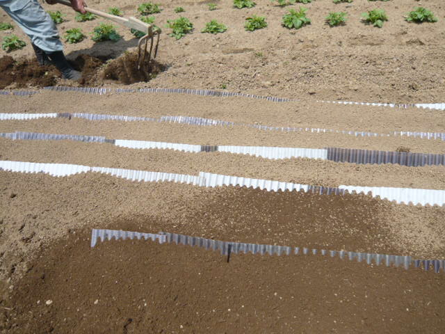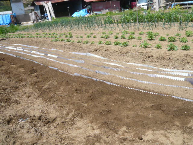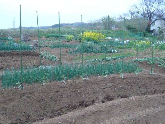 Aさんと二人でムカゴを植えました。今までの最多:700個を植付ました。09:00−12:00 3時間 とても疲れました。隣の玉葱畑に潜んでいた根切り虫をAさんが捕まえ見せてくれました。無農薬なのでどうしてもこういう虫が数匹潜むのだそうです。12:00前にオーナーのHさんが見えて激励してくれました。昼に取れたての筍を3個頂きました。