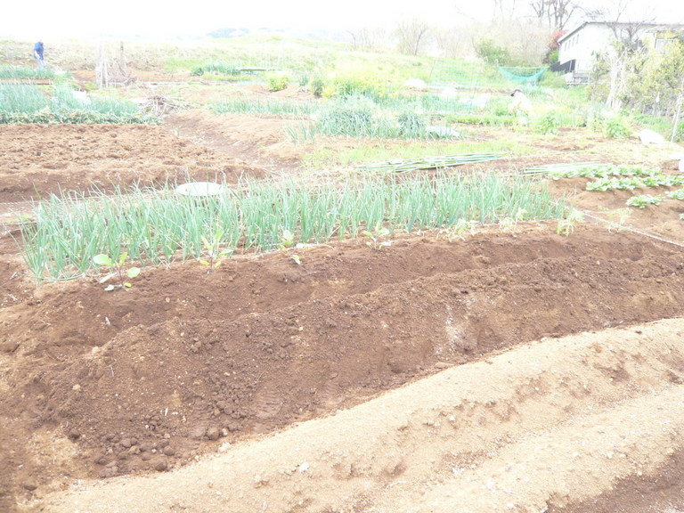 茄子:4本とトマト4本を同一の畝に定植しました。また、南瓜2本を一番手前の畝に植えました。かぼちゃはあと6本欲しいです。GW頃に求めます。