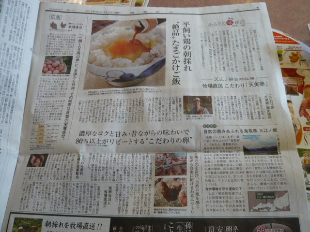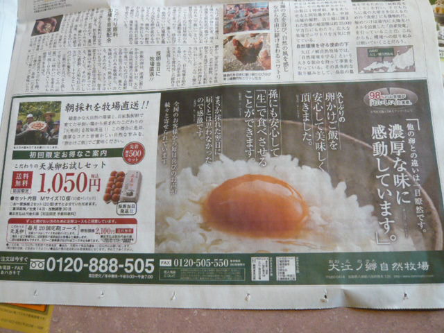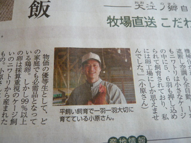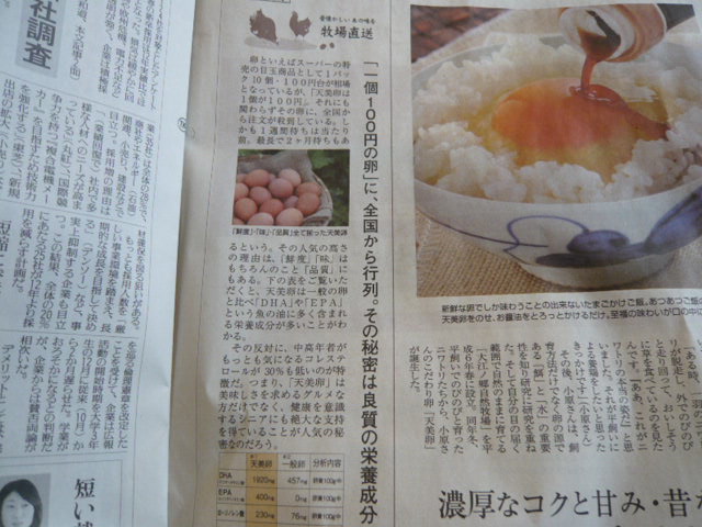 今朝の讀賣に掲載された記事です。昔は皆このような放し飼いの鶏卵を美味しく食べていた記憶があります。伊豆松崎のとんび農園の鶏卵もこのように育てられています。さっそくSさんに紹介メールしました。