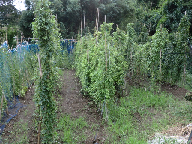 ムカゴを採集しました。第一圃場の自然薯畑とムカゴからの自然薯畑、第二圃場の自然薯畑とムカゴからの自然薯畑から満遍なく採取しました。圧倒的に自然薯畑の方がムカゴは多いです。不思議なもので、実をつけていない蔓と付けている蔓が極端に分かれます。これは種芋によるのでしょうか?成長した蔓・葉の環境によるのでしょうか?生産地が同じ種芋でもムカゴの有無は分かれます。ムカゴの有無と薯の大小は薯の掘り出し時に評価してみます。