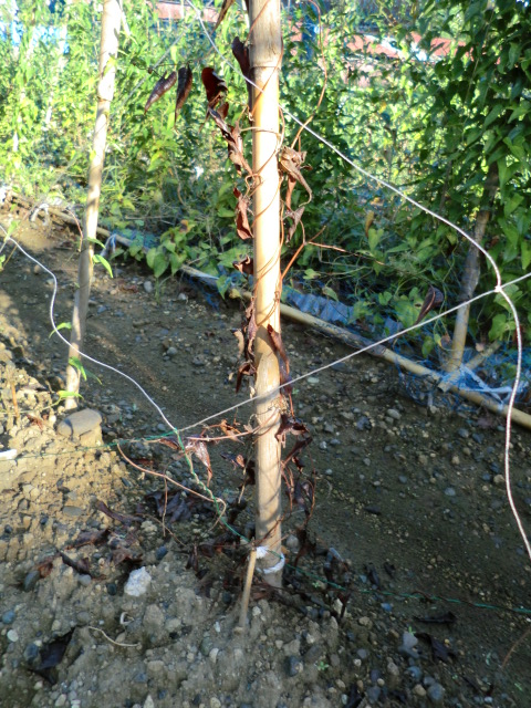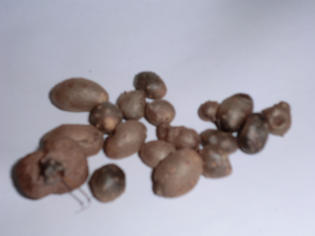 その後、浜田圃場に行きました。むかごが小さいもの含めて200個ほど実をつけています。大きいものだけを採集してきました。圃場の隣のモロコシ畑はご覧のように刈り取られています。昨日、浜田さんが刈り取りサイロ作りを行ったようです。第一圃場の自然薯が2本ほど枯れてしまいました。原因を調べます。