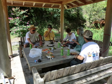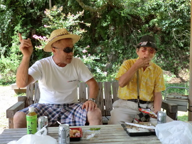 Happy LifeのHさんの肝いりで2回目の親水公園でのランチです。地元のTさん、田舎暮らしのUさんご夫妻、移住1年目のKさんの計6人で楽しくランチしました。(俳優のSさん、峰のOさんは仕事のため欠席) 河津町活性化や、敬老会でのHさんのマジックショーの話で盛り上がりました。Hさんご馳走様でした。