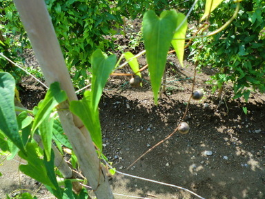 続いて第一圃場に戻り、自然薯の観察とムカゴ畑で目立った雑草の草取りを実施しました。自然薯の畝ではムカゴが100個近く実をつけています。蔓が弱っている自然薯がありその蔓ほどムカゴが多く実をつけています。子孫保存の強い意志が感じられます。