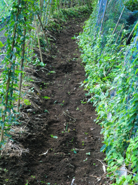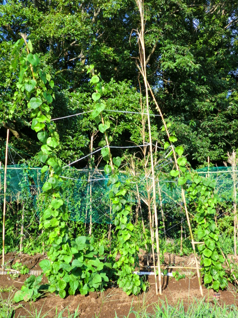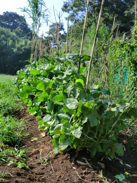 先日の雨で倒れた黒豆の支柱立てと養生(ひもで茎を支柱に巻く)を行いました。最後に土の大寄せを行いました。これで台風対策も完了しました。後は丹波篠山地区と同じサイズの豆が収穫できることを待つだけです。