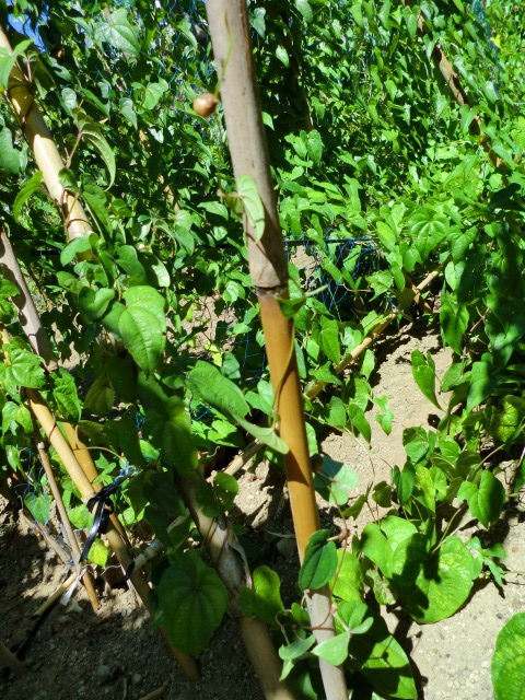 今日は浜田牧場さんの飼料サイロ作りのお手伝いが主な作業です。朝時間があったのでファーム伊勢原の圃場を探しに伊勢原の大山山麓を1時間ほどうろうろしましたが、自然薯圃場が見つかりませんでした。後日、訪問の上、圃場を見せてもらいたいと思います。帰宅後浜田牧場さんの作業場に向かいました。まだ人が来ていないので圃場の観察とムカゴ畑の草取りを行いました。ムカゴ畑にもム蔓にムカゴが2-3個実を付けていました。大豆サイズです。自然薯の蔓のムカゴ合わせて計10個採集しました。ムカゴの蔓が2個ほど枯れてしまっています。