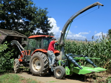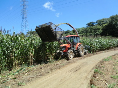 収穫(資料)したモロコシ畑は3か所です。コンバイントラクターと2トントラックで6台分の飼料を作成して本日は終わりです。後1日で2つ目のサイロも飼料の詰め込みが終わります。夕方は風が出て涼しかったですが、疲れました。