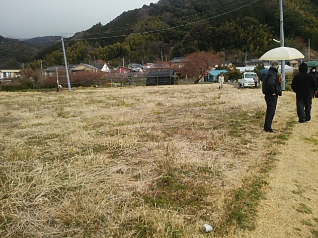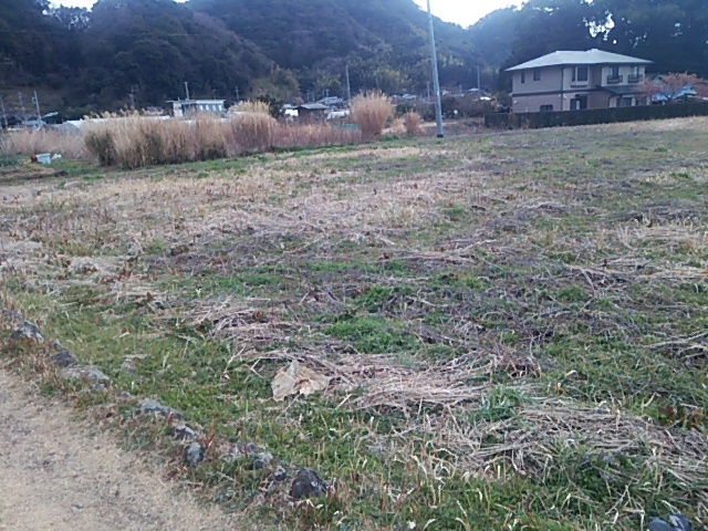 10:30に河津に入りました。14:30から田中のOさんの土地をソフトボールチームのTさん、IさんそいてIkさんを誘って見に行きました。来宮神社の北にある約2反の畑です。数年前から何も栽培しておらず遊休地のままです。軽トラで畑の脇まで着けることができます。ここで500本程度栽培したいと思います。その後、踊子温泉に行きました。河津桜はまだ2分先と云ったところです。開花した花がひとつだけありました。