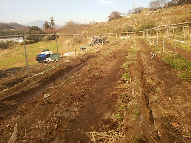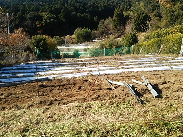 午前中は第一圃場の:防草シートを除去しました。3畦に敷いたシートを除去してみるとその下には雑草が一つも生えていませんでした。来年早々には中耕して土に元肥を施し豊かな土壌にしたいと思います。