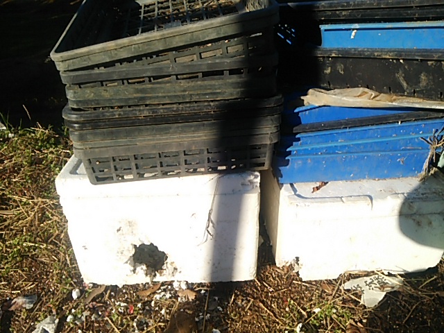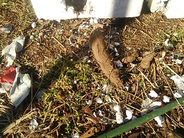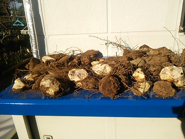 第一圃場脇に保管していたヤマト薯(ヤム薯とイチョウ薯)の保存容器に穴があいていました。5cmφの穴から2−3個の薯を取りだされて傷ついていました。おそらくアライグマの仕業です。新聞紙と萱に包んでアルミ製の保存容器の中の薯も寒さから半分以上が腐りかけていました。急遽、その部分をカットして日干ししました。乾いてから温度10度程度の保管容器(または野菜ハウスの隅)に保管する予定です。