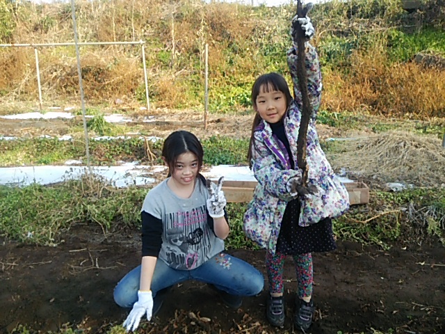 12月29日平塚圃場:孫たちの自然薯掘り!