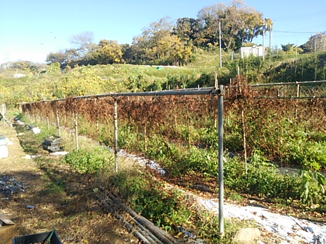 07:00−10:00 第一圃場の3列目の畦の大半を掘り起こし、水洗いと日干しをしました。畦の蔓葉はすっかり枯れてしまいました。下の畑の奥では台風18号で流れた土砂を相原建設さんが大型のユンボで元通りにする作業を行っていました。第一圃場の5mに亘って崩れた土砂もいずれ回復作業をしてくれるそうです。午後は梱包作業をして茅ヶ崎の配送センターに出荷してきました。