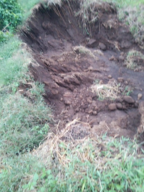 午前中に第一圃場に行き30本堀上げました。掘り上げた畔シートも片付けもできないまま帰宅して水洗、日干しそして梱包。午後は茅ヶ崎の配送センターに持込ました。配送センターのFさんの紹介で都内の通販業者が来年郵便局のお歳暮用ギフト商品として扱ってくれる提案を頂きました。供給量や仕向け価格の問題などありますが前向きに検討する予定です。2日前に地元の相原建設さん10月の台風18号で崩れた土砂崩れ(写真右端)を復旧(下の写真)してくれました。A社長:大変ありがとうございました。皆さんに支えながら自然薯栽培事業が一歩づつ前進してゆきます。