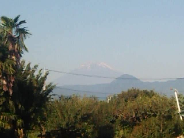 好天です。富士山が見えました。先日の初冠雪から晴天が続き少し雪が溶けていました。