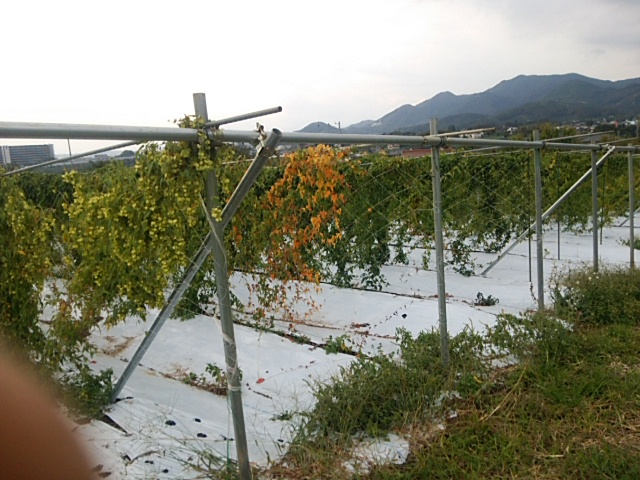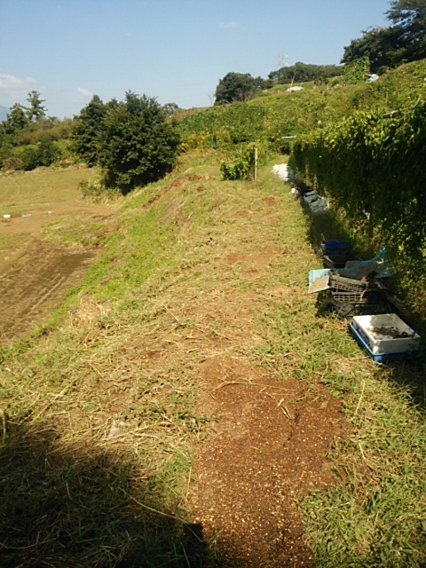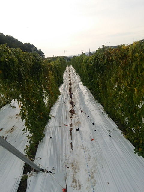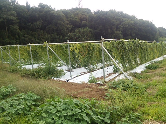 相模湖ICから厚木経由での帰宅途中で伊勢原の自然薯畑を見学しました。昨年、伊豆松崎町の人達と見学に行った圃場です。蔓葉はまだ青々としていますが、一部紅葉が始まっていました。まだ試し掘りは行っていないようです。本格出荷は11月でしょうか!