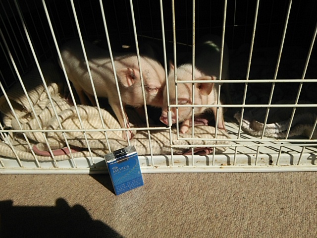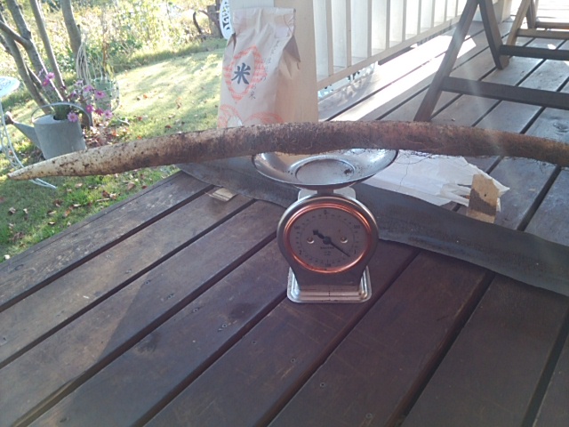 その後、自然薯を3本掘りました。2本は浜田牧場さんに提供しました。新米5kgを頂きました。生後20日の子豚が2匹いました。とても可愛いです。写真を撮って孫に送ってあげました。