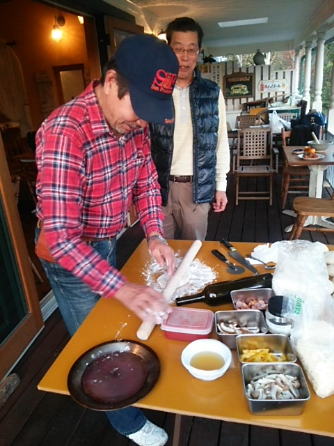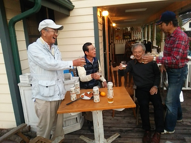 午後、13:00に小田厚ー圏央道ー(八王子)−中央高速経由で学生時代の仲間の一人のKさんの経営するステーキハウスに向かいました。16:00前に到着。同じ仲間のIさん、Sさん、IBさんも到着。持参した自然薯は1.1kgありました。BBQはピザ、牛肉のステークを頂きました。ここは標高1.000m弱で冷え込み、夜はハウス内の薪ストーブでSさん持参のおかき(中華まんじゅうの具が野沢菜やゴボウのキンピラなどの種類があります。)を頂きました。21:30近くのペンションに宿を取りました。