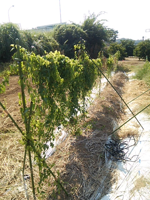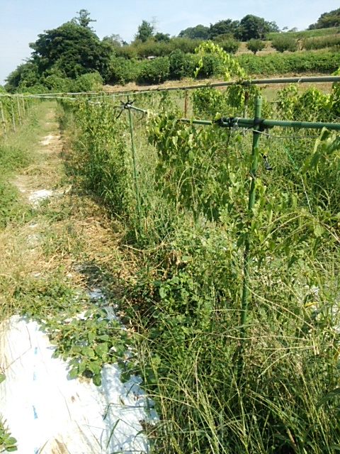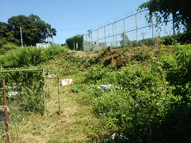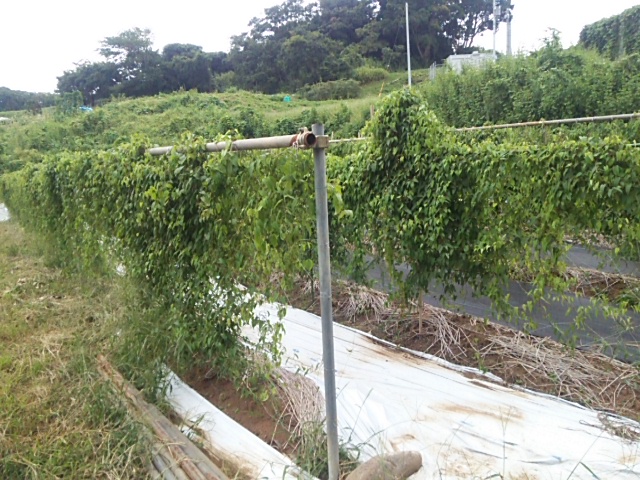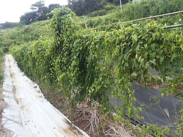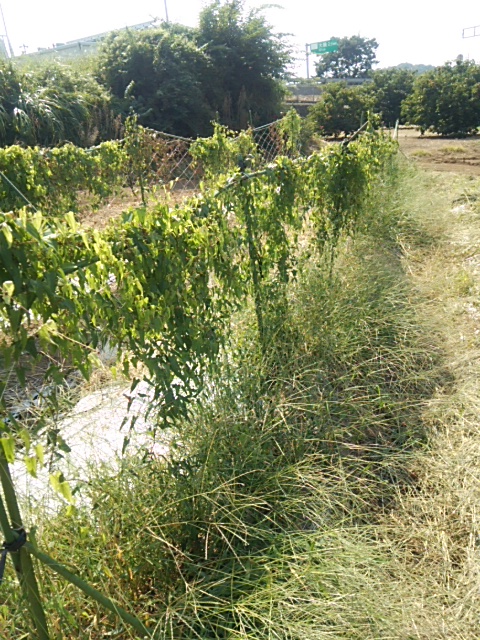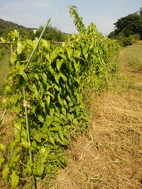午前中に第二圃場の畦内の草取りをしました。雑草が大きく成長しており、抜き取る時に自然薯の蔓が根元から2本一緒に取れてしまいました。大失敗です。やはり雑草は小さい時にこまめに抜き取ることが必要です。右側の畦は自然薯の蔓を抜きとるリスクを警戒して雑草除去は割愛しました。