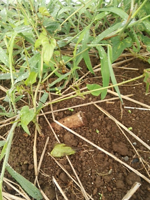 早朝、圃場に行きました。先日来の雨で畦の上の種薯が数個むき出しになっていました。蔓と新薯はそこから切れずに伸びていますので大丈夫と思いますが、今後の観察と薯掘り時に影響を評価したいと思います。第二圃場の畦内の雑草が茫々でした。1W前の追肥の大部分は雑草の成長に一役買ったみたいです。来年はこまめに雑草除去を心がけます。