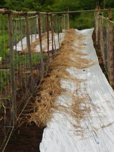 昨日午後から雨になりました。待望の雨です。本日も降り続いています。朝圃場に行きました。蔓が伸びてネット絡んでいます。雨をためるタンクも随分溜まっていました。今のうちにもっと溜めておきたいと思います。しばらく自然薯の定植ができません。