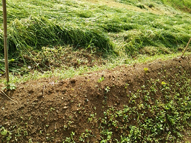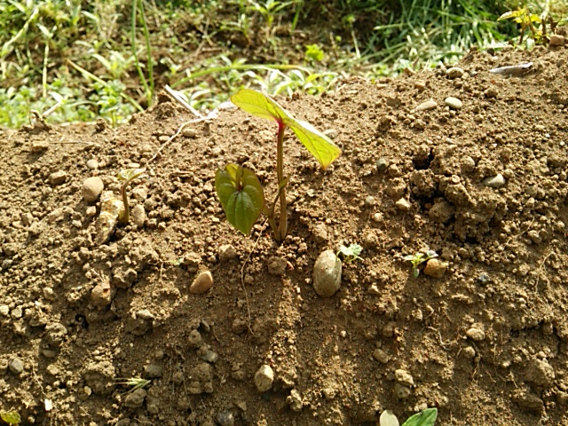 帰りに川向うの畑に植えたムカゴの状況を見ました。芽が出たものはほんの数個です。今年も発芽率はよくありません。もう少し様子を見たいと思います。