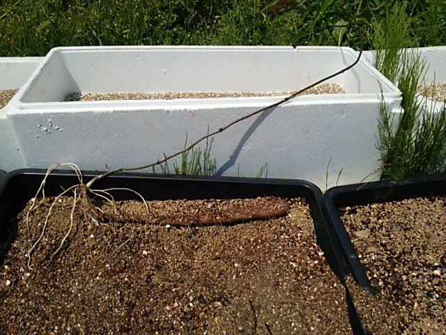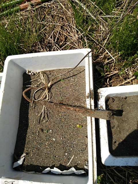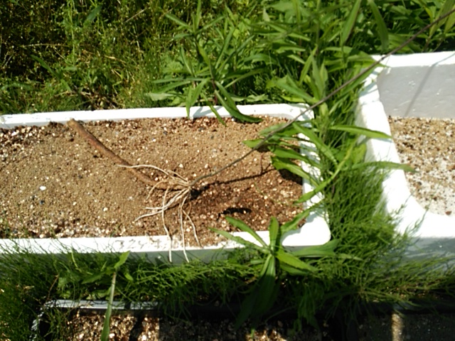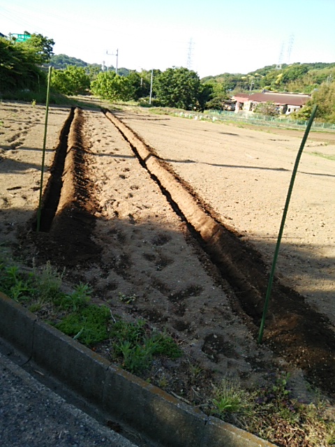 早朝、6:00−07:30圃場に行き10cmに伸びた種薯を追加定植しました。この程度だと支柱を立てる必要はありません。1本だけ畑の斜め斜面に植えました。天然物の自然薯に近い環境で育ててみたいと思います。(写真はクリックすると拡大表示されます。) その後第2圃場の行き溝堀りを2畦実施しました。