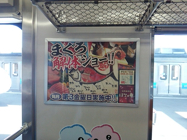 写真は伊豆下田のはなの舞のまぐろの解体ショーの広告です。ここでは毎週金曜日に実施しているようです。