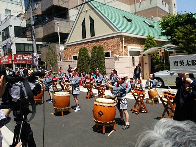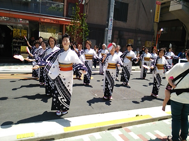 早朝5時に河津を出発して東名高速ー首都高を経由して浅草橋に09:00に着きました。地下駐車場から食材を2階の会場まで運び販売の設営をしました。販売開始は10:30からです。マロニエは緑が盛りで花はまだ充分開花していませんでした。太鼓とおどりで祭りが始まりました。