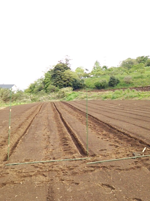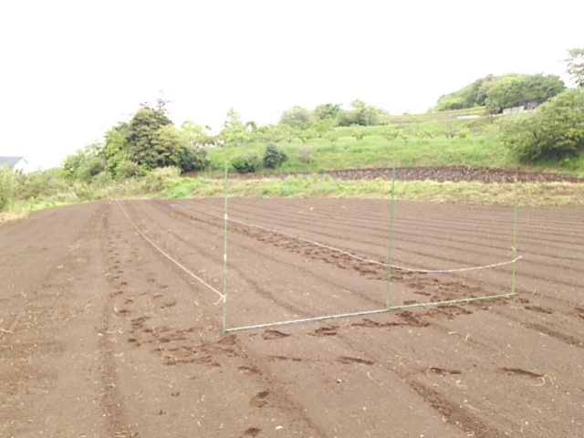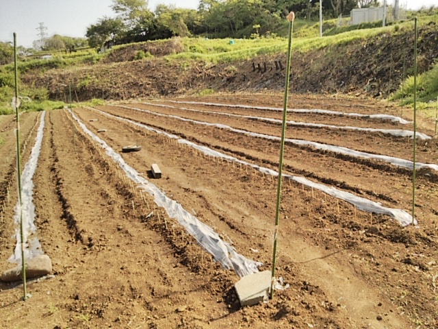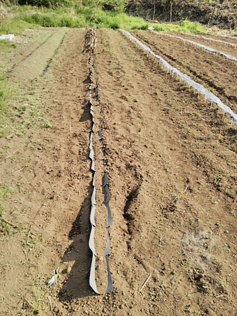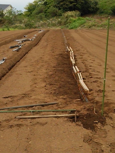 5月4日平塚第一圃場の畦シート埋めこみ完了 |