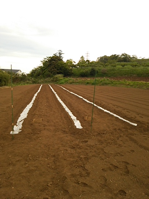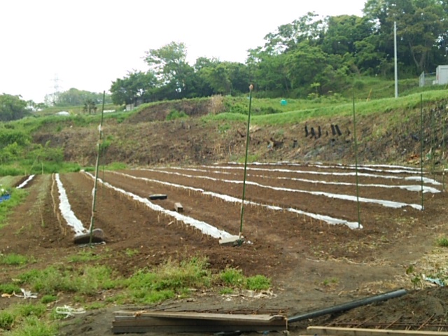 5月8日平塚第3圃場:白マルチ布設完了 |