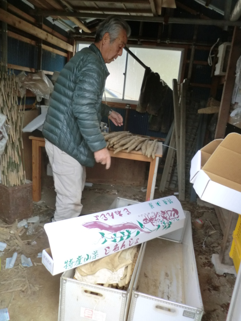 お手伝いをしました。その後、クロネコ店まで出荷作業にも付いてゆきました。JAのお店(JA伊豆太陽:農の駅 ほのぼの売店)で販売中の自然薯も見せて貰いました。結局、鈴木さんのお宅についたのは16:00過ぎ、PCの指導は15分ほどで終わり、引き揚げました。生椎茸を頂きました。鈴木さん:ありがとうございました。