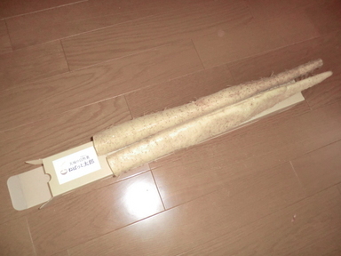 受注残の出荷用の薯の掘り上げを行いました。比較的大きさが揃った薯が掘れました。すべて1,000g以上のサイズです。家庭用段ボールが届きました。無地の段ボールで長さが60cmあります。200個のロットで、単価は50円と格安です。Web掲載用の写真を撮りました。450g、850gそしてSさん希望の1.5kgサイズのカット済家庭用自然薯です。