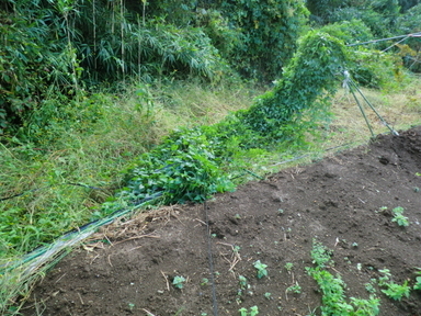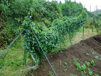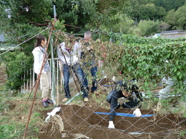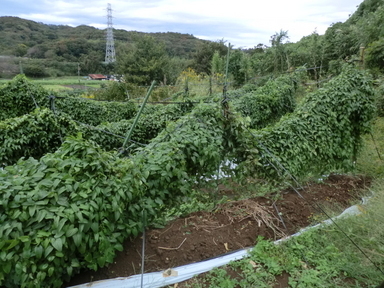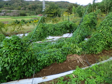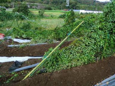 昨夜から午前中にあっけて10年に1度の強い台風が関東を直撃しました。電車の多くは止まり、多くの学校が休校になりました。自然薯圃場にも北東の強風が荒れ撒くりました。午後には台風の目が東北に抜けて晴れ間が差してきました。午後、平塚の圃場に行きました。