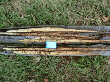 10月13日から出品していたヤフオクの自然薯(プラスムカゴ100g)に6本の落札がありました。横須賀のXさんからです。平塚の圃場に行き堀上げてはこboon(関東だと6kgの場合:送料:880円(2kgだと580円))で出荷手続きをしました。写真右は堀上げた後の状態です。