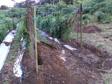 すべてではありませんが、一部の畦の支柱・ネットが倒壊していました。