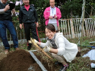 その後順々に自然薯を掘り上げました。大体一人当たり5分ほどで堀上げました。